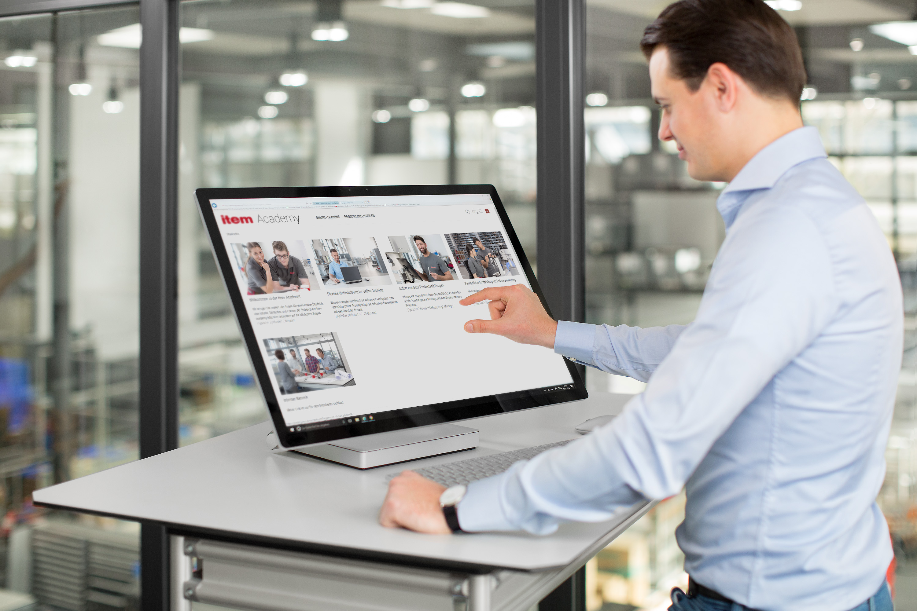 Using digital engineering to achieve efficient processes in mechanical engineering – item is coming to Motek in Stuttgart to show just how it’s done. Visitors will be able to witness an impressive array of innovative online solutions at Stand 3103 in Hall 3. For the first time, the company will be going fully digital across the board, showcasing numerous selection and engineering tools for all its product segments, such as factory equipment engineering, linear technology, lean production, work bench systems and stairways and platforms. These provide customers with comprehensive support when implementing their projects. The new item Academy also serves a similar purpose with its free, web-based training courses on products and specialist topics. This e-learning portal serves as a supplement to the face-to-face training offered by item and provides information in short, easy-to-follow courses.