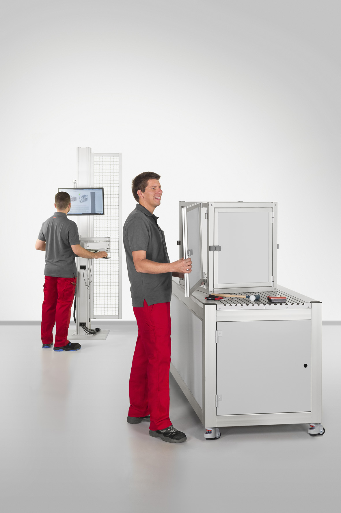 The MB Building Kit System is constantly growing, and item Industrietechnik is extending its portfolio yet again with more factory equipment. For example, the new Latch offers a convenient means of securing doors and hatches. The new Cover Profile 8 K/Al for Line 8 profile grooves is especially easy to cut to size and install. It creates a clean, gap-free surface with an aluminium look. The new Stacking Guide also brings clear advantages for users by making it much easier to stack boxes and pallets. The new components can be combined easily with the more than 2,500 components in the MB Building Kit System. The end result is that users have virtually unlimited options for building everything from a simple frame to an automated plant.