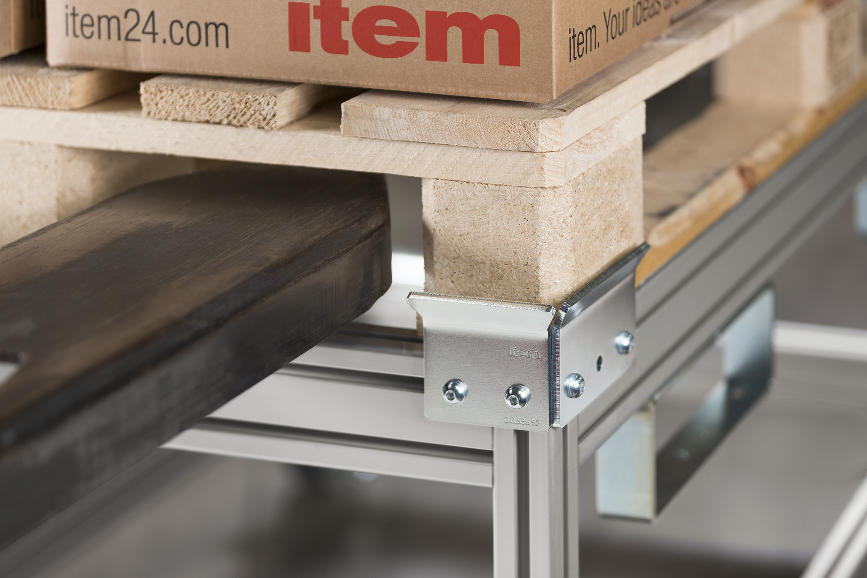 By launching its new factory equipment, item Industrietechnik is creating even more flexibility and freedom for engineering tasks. For example, the new Latch offers a simple means of securing doors and hatches. It comprises two parts – one that is fitted to the surrounding frame and another element with a grip that is fitted to the door or hatch. The compact frame part is secured in the Line 8 groove of the existing frame. When the hatch or door is closed, the grip element audibly clicks into the frame part, giving the user audible feedback to indicate that the door is secure. It takes little force to release the spring-mounted catch mechanism and open the door again, and the ergonomically designed grip makes the Latch even easier to operate. The Latches can be used with Line 8 and 6 profiles and with Clamp Profile 8 32x18. Cover Profile 8 K/Al is another new component in the item MB Building Kit System. It seals a Line 8 groove on a profile to keep dirt and dust out and produce an easy-to-clean surface. The plastic strip is easy to insert into place and can be quickly cut to size using item Multi-Purpose Pliers. An aluminium finish foil gives Cover Profile 8 K/Al the look of an aluminium profile. Another piece of factory equipment, the new item Stacking Guide 8 St 80x80-30° makes it easier to stack boxes, pallets and trolleys and prevents positioning errors. The centring aid on the device ensures that objects automatically slide into the desired position. The 30° incline distributes weight over multiple points.