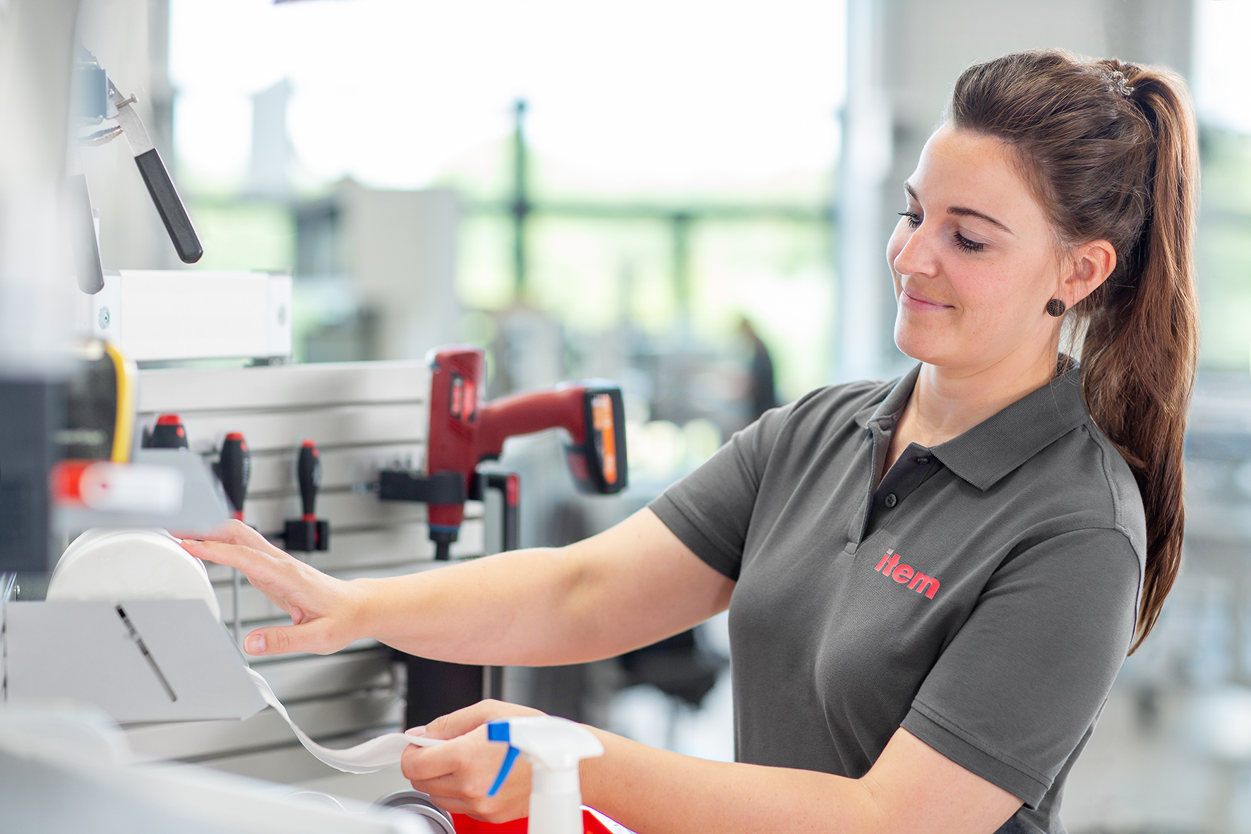 The item Work Bench System makes it possible to adapt work benches perfectly to different requirements. The Solingen-based company is constantly expanding its product catalogue to create ergonomic work benches and thus optimum working conditions. Its goal is to help employees do their jobs and lighten their workload. Thanks to their modular and flexible design, work benches can be adapted perfectly to individual members of staff. There are also numerous components that help achieve cleanliness and structure in workshops and production facilities. The new Thin Client Holder, for example, makes it easy to mount computers. The space-saving two-part holder is attached to a Line 8 groove or between the monitor and the monitor holder/Monitor Arm. Self-adhesive protective strips hold IT devices securely and safely. At the same time, the holder can be adapted to different housing sizes. With the new Flexible Holder 8 D23-D30 from the item Hook and Holder System, tools can be secured in next to no time. This is thanks to a clamp consisting of an elastomer band that wraps perfectly around tools with diameters between 23 and 30 mm. Distribution Strip, 5+USB Charging Socket provides five grounding-type sockets, an empty slot for additions and two USB ports with a charging function. This ensures there are plenty of power connections for lights, extension cables, etc., and a convenient option for charging mobile devices. The Distribution Strip can be affixed to a Line 8 system groove using adapters or can be installed in profiles with cable conduit K56. Further new additions to the Work Bench System are Wipe Dispenser 280 D150 and Shelf 280x125. The Wipe Dispenser fits perfectly to a Line 8 groove and is quickly secured in place with two screws. It can hold standard rolls of wipes with diameters of up to 150 mm directly at the work bench. An integrated tearing edge makes it easy to tear off individual paper wipes. To ensure utensils such as pens, scissors and measuring tools are stored safely and tidily, item now offers Shelf 280x125. This is also attached to a Line 8 groove with two screws and has all-round edging including an angled picking edge.