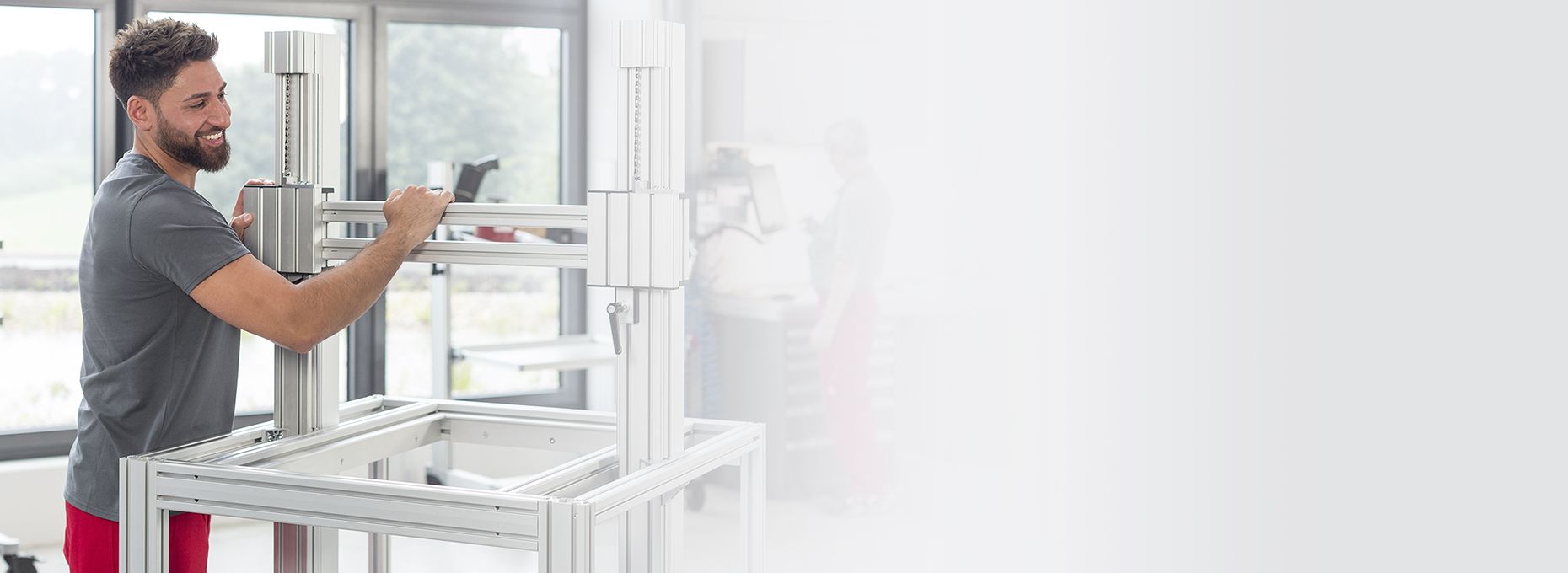 Even under the highest loads, item's innovative connection technology ensures the secure hold of constructions. Pretensioning in the flanks of the aluminium profiles ensures a permanent strong hold. Subsequent modifications can also be made in just a few simple steps thanks to the modular design.