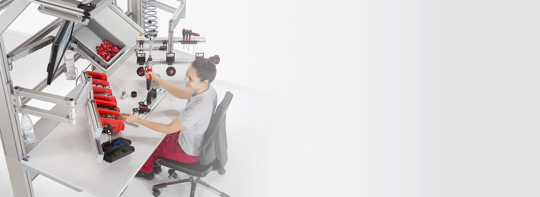 item was the first supplier of an industrial workplace system to receive the seal of the "Gesunder Rücken e.V. campaign" for its ergonomic design. Studies show that ergonomically designed industrial workplaces increase an employee's productivity. With item, you have development scope for suitable workplace design, especially for technical and economic requirements.